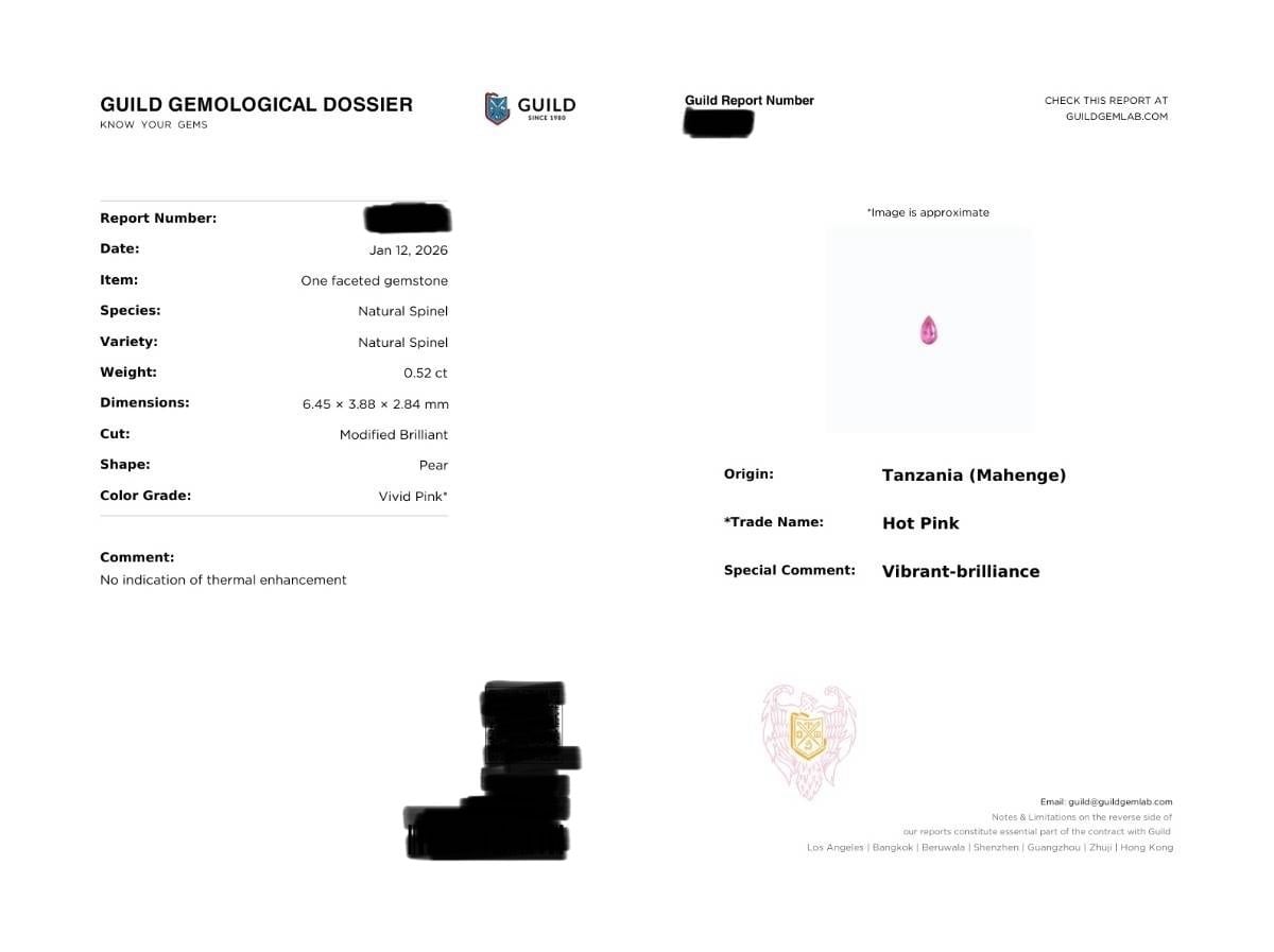 【動画有】マヘンゲスピネル 0.52ct タンザニア産 GUILD鑑別書付き 蛍光有